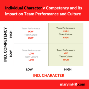 Even if a person is low on competency, their high character will improve team culture and performance